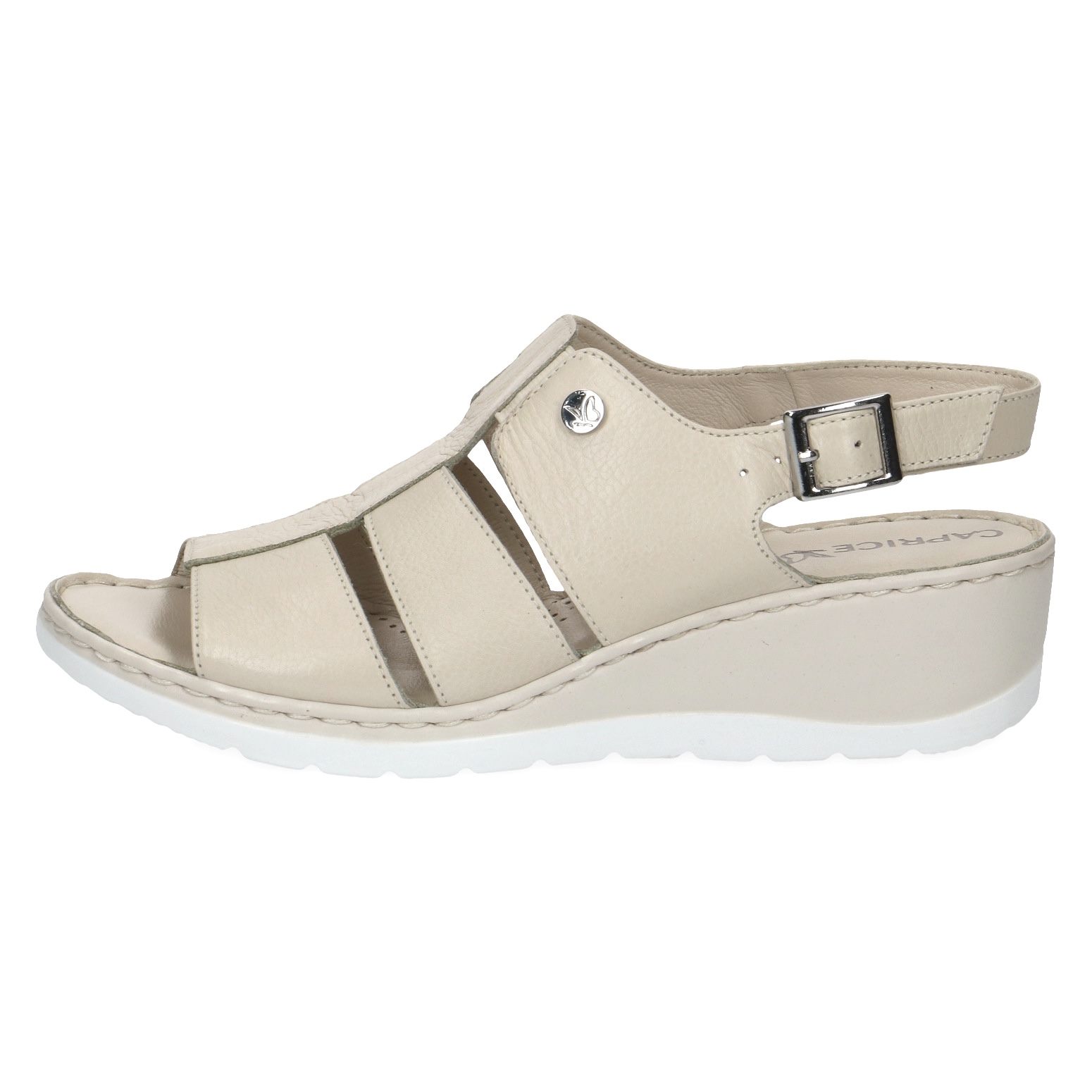 - Béžové kožené sandály na klínku CAPRICE 28254