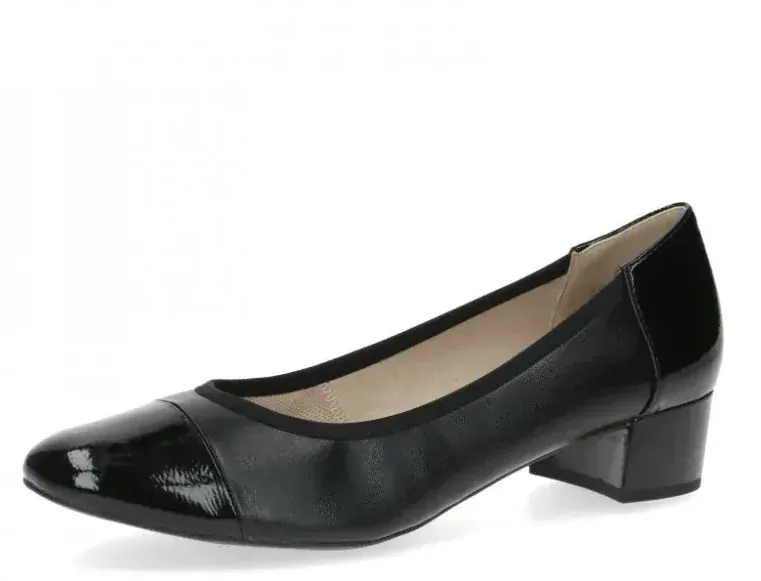 Dámské lodičky Caprice na pohodlném širokém podpatku. Kombinace matných a lesklých materiálů dává lodičkám šmrnc.