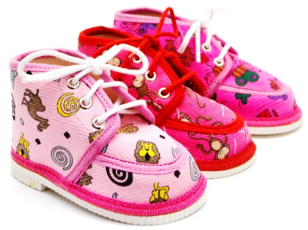 Bačkorka je z bavlněné tkaniny. Podešev bačkorky je styroporová, certifikovaná žirafou. Tato bačkorka sahá nad kotníky, je klasickým typem bačkorky pro děti od 1 roku do 3 let. Šněrování bačkorky společně se zpevněným opatkem zaručuje pevné zafixování nohy v botičce a tím se docílí správného postavení nohy. Výroba v ČR.