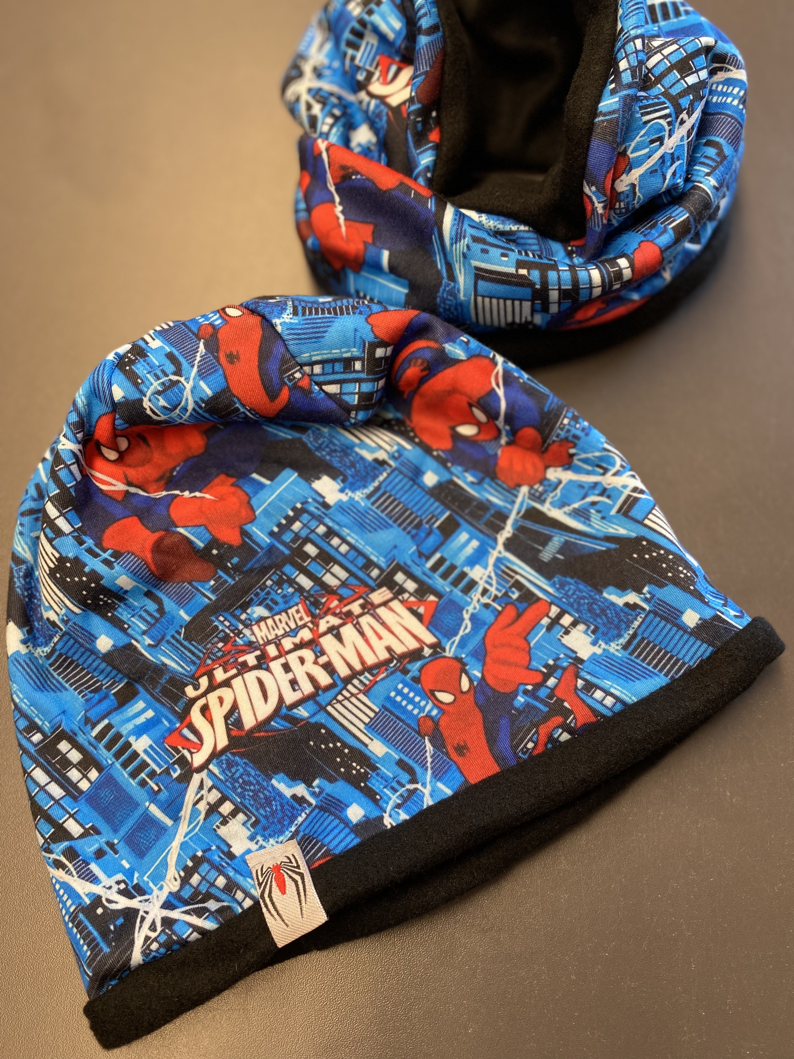 Zateplená čepice a nákrčník Spiderman