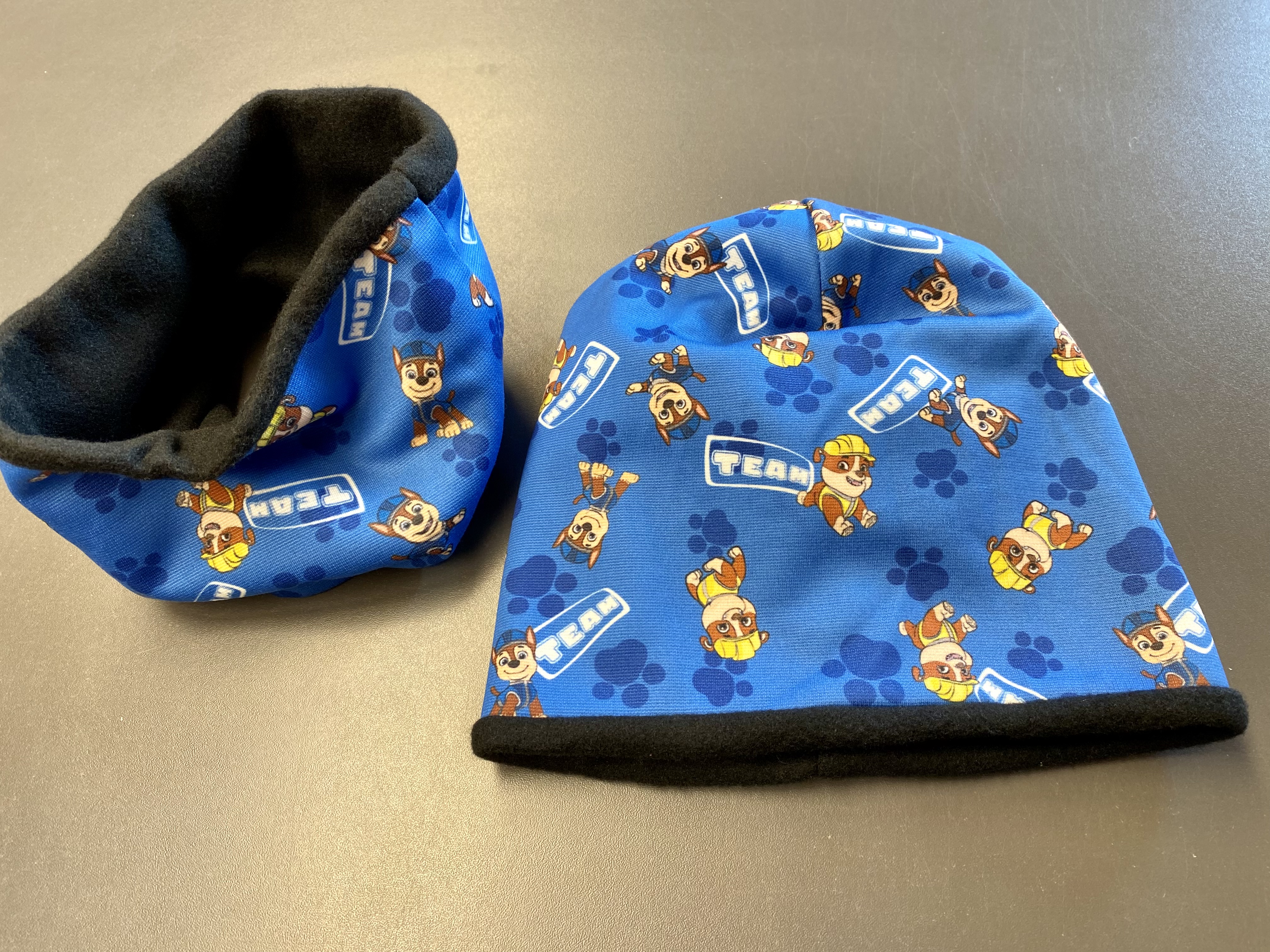 Chlapecký set čepice a nákrčníku zateplený hebkým chloupkem s motivem oblíbené pohádky Tlapkové Patroly.