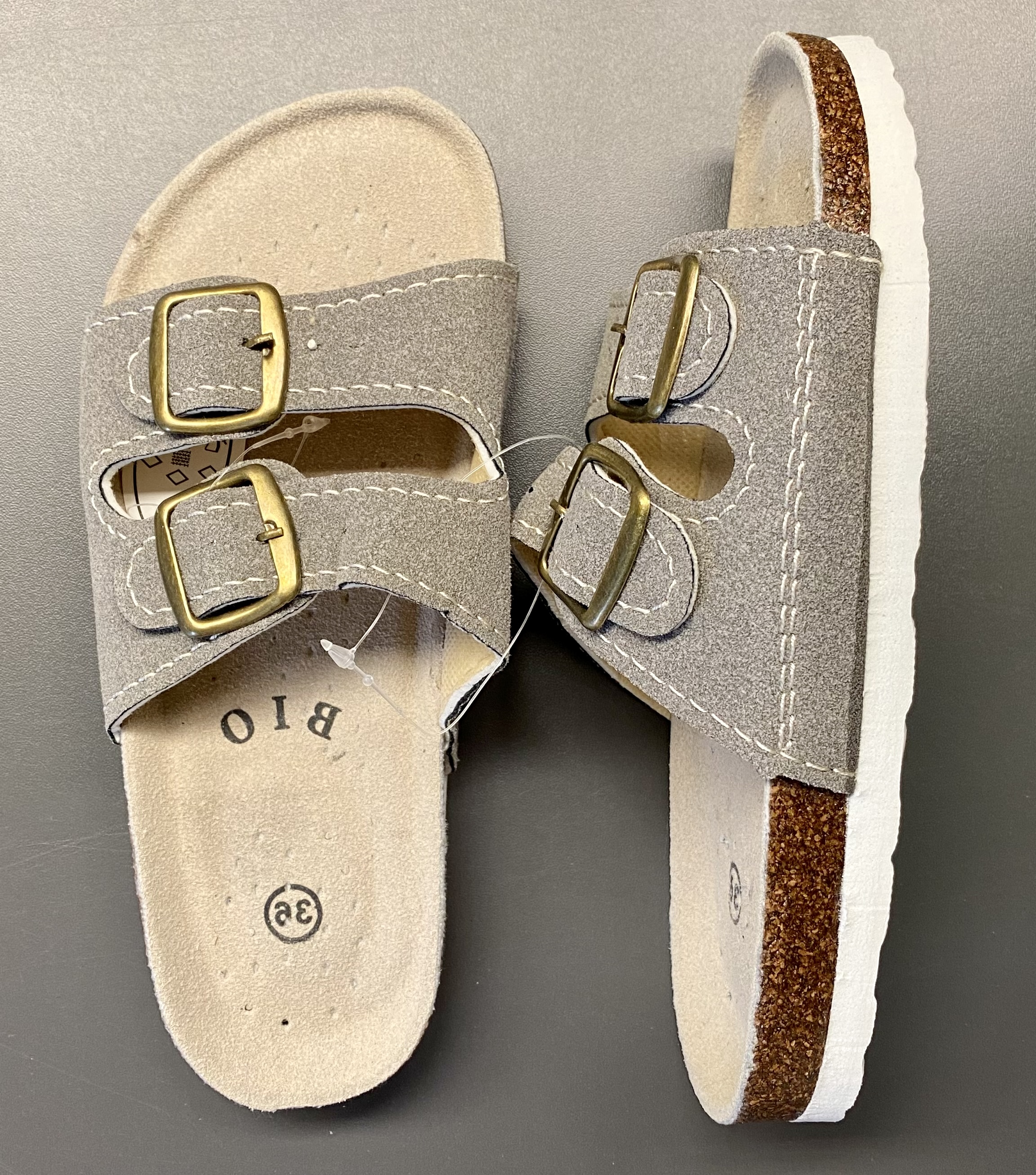 Klasické šedé korkové pantofle, které se hodí do práce, školy i na doma. Díky kvalitní stélce a podrážce tlumí veškeré dopady při chůzi. Nastavit si je můžete díky nastavitelnými pásky s kovovými přezkami. Pohodlné a odolné na nošení.