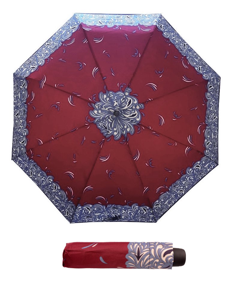 Elegantní skládací deštník značky Derby v módním vzoru: bordový střed + šedo bílý okraj.