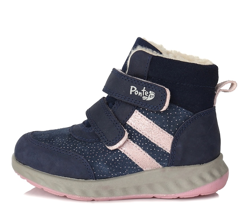 Zimní dětská obuv značky Ponte se vyznačuje vysokým pohodlím a komfortem a atraktivním vzhledem. Boty Ponte jsou vyráběny z měkkých kůží, jsou používány neklouzavé ohebné podešve. Použité materiály zaručují flexibilitu a pohodlí pro dětskou nožičku. Konstrukce obuvi je navržena tak, aby co nejméně bránila zdravému vývoji dětské nohy. Obuv má praktické zapínání na suché zipy.
