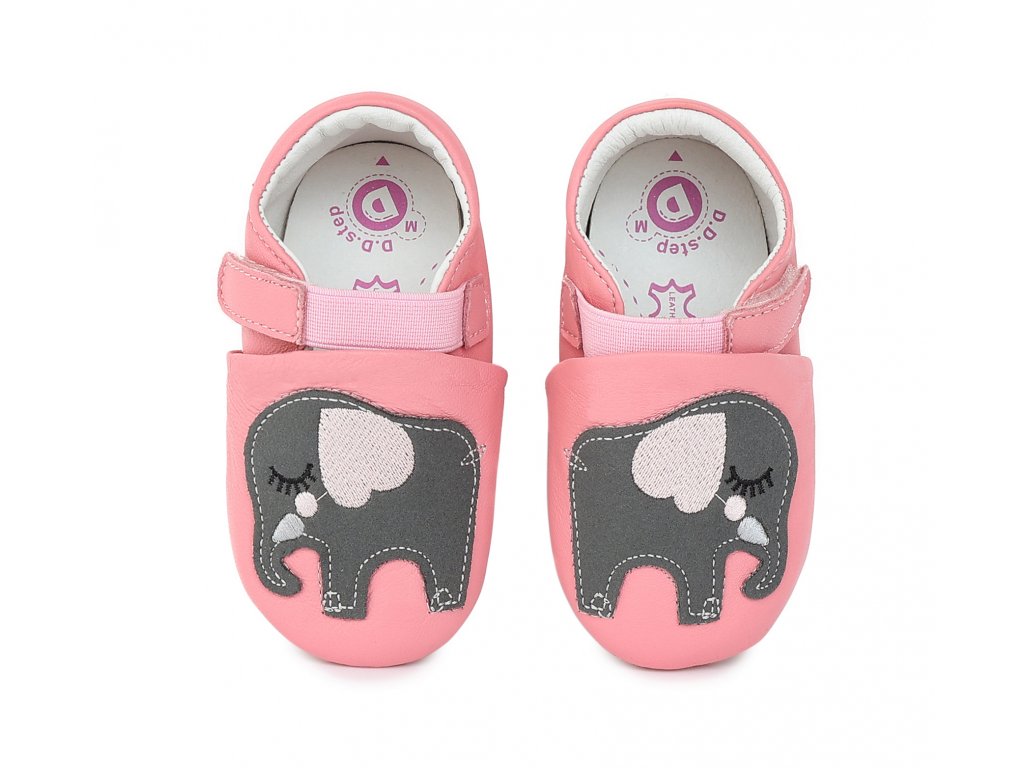 - Růžové kožené capáčky D.D.step K1596-163 se slonem