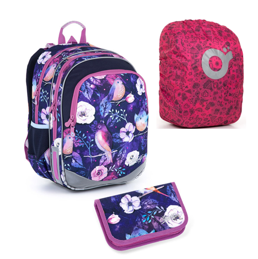 SET Školní batoh s penálem a pláštěnkou TOPGAL ELLY 21004 ptáčci