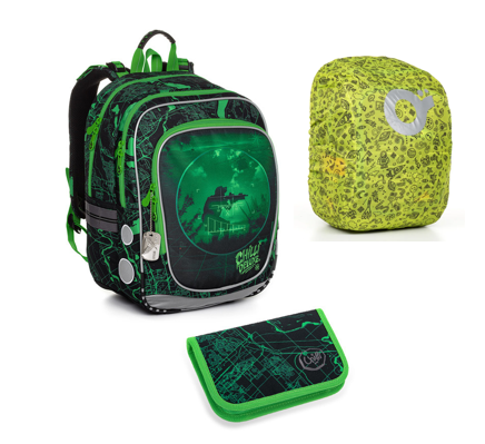 SET Školní batoh s penálem a pláštěnkou TOPGAL ENDY 20014 vojenský