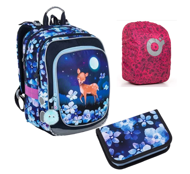 SET Školní batoh s penálem a pláštěnkou TOPGAL ENDY 23002 se srnečkou