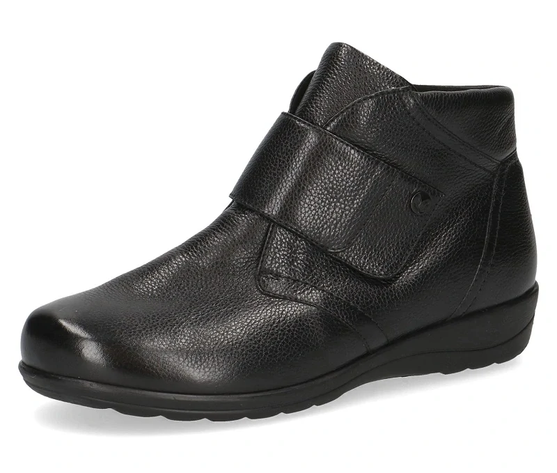 Dámské černé kožené polobotky/polokozačky vhodné pro vysoký nárt, širší chodidla nebo halluxy. Svršek je tvořen z přírodní měkké kůže. Stélka "On air" vám zajistí pohodlí, díky vzduchovým bublinám tlumí nárazy při chůzi. Jedná se o zimní obuv, která je vevnitř zateplená (včetně stélky) kožíškem.