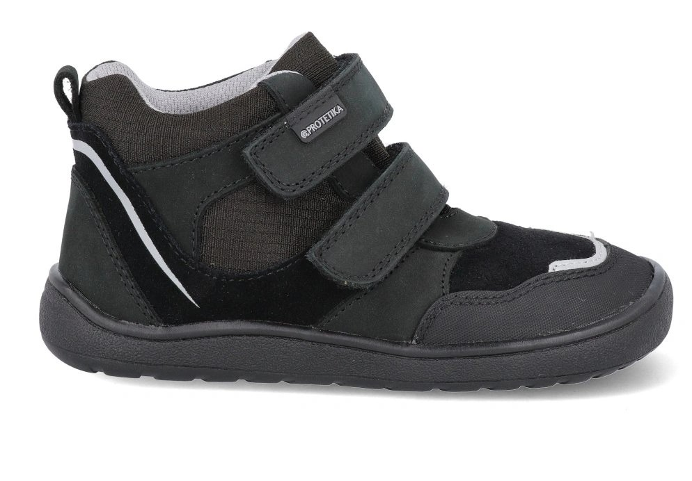 Barefoot celoroční boty BANET BLACK krásně kombinují materiály textilu a kůže. Sednou na normálně široké nožky, vhodné i pro dominantní palec a normální i vysoký nárt. Dostatek místa pro prsty do šířky zaručuje anatomicky tvarovaná špička boty. Podrážka je ohebná, gumová, s jemným vzorkem.