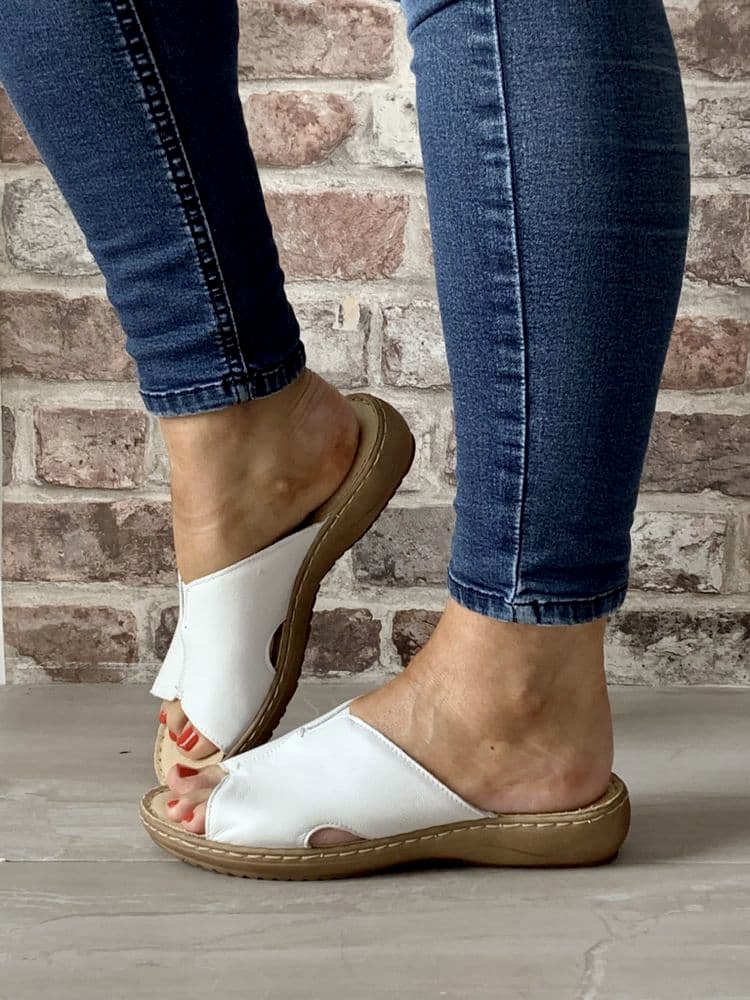- Pohodlné bílé kožené nazouváky - pantofle MARCO TOZZI 27901