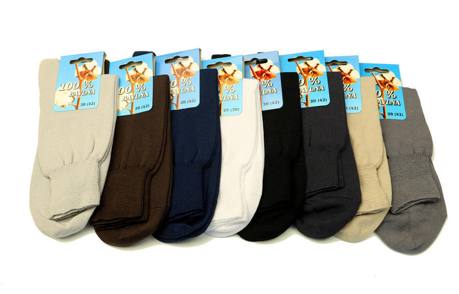 Klasické ponožky ze 100% bavlny, v hladkém provedení. Jemné provedení pleteniny. Jsou vhodné pro alergiky a pro ty, kdo vyhledávají výrobky bez příměsí umělých vláken. Špice je uzavřena ručním řetízkováním. Ponožky s jemným svěrem lemu - nedělá otlaky.