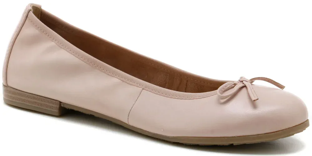 Dámské pohodlné baleríny s mašličkou od Marco Tozzi. Univerzální jemná barvička růžové a tělové, která se hodí ke každému outfitu. Balerínky vynosíte jak k sukni a šatům, tak ke kalhotám.